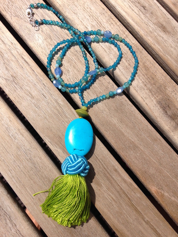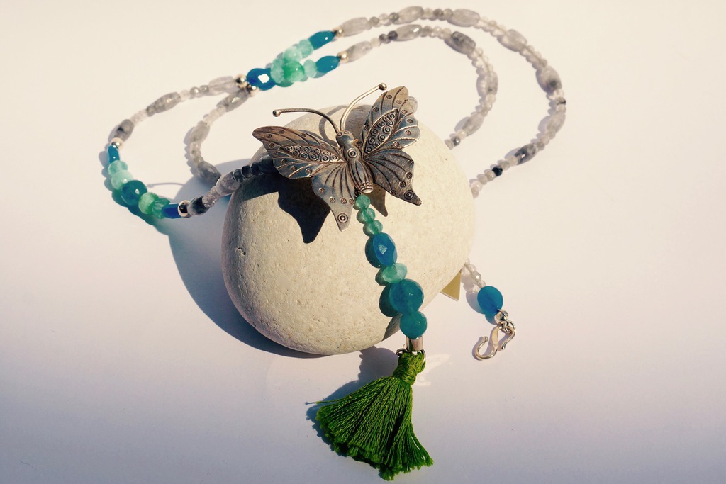 Wunderschöne und ausdrucksvolle Ketten unterstreichen die Persönlichkeit Ihrer Trägerin. Aus Perlen, verschiedenen Edelsteinen, mit ausgefallenen Elementen, mit trendiger Quaste und, und, und.. der Phantasie und Lust zum Kombinieren sind hier keine Grenzen gesetzt.